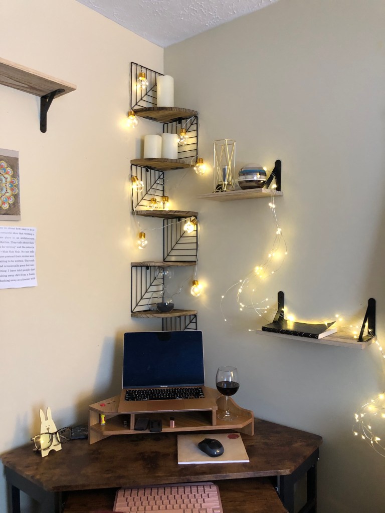I’m not sure why it took me so long to set up a writing desk for myself. Maybe it was because writing was a hobby, and therefore not serious enough to deserve a dedicated space. Maybe it was because I told myself I could invest in a desk when I became a ‘real’ writer (aka, a published author). Maybe it was because I, like many other people who grew up without a whole lot of money, wasn’t used to treating myself to something that had no purpose except for my own pleasure.